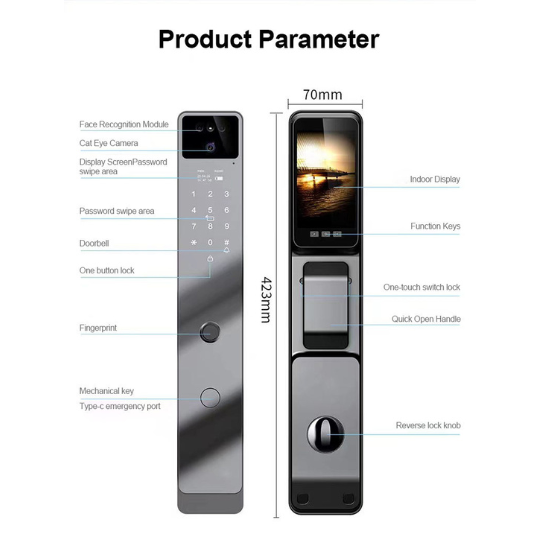 Mở khoá bằng mật mã, thẻ từ, điều khiển từ xa qua app điện thoại và nhận diện khuôn mặt.
